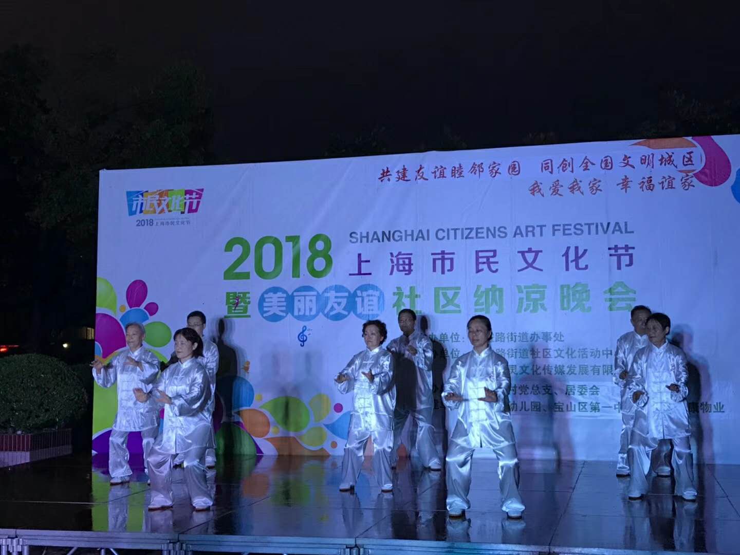 为进一步提高全民文明素质,不断巩固全国文明城市创建成果、提升全国文明城市创建水平。7月5日晚,宝山八村党总支、居委会在小区中心广场举办了“与文明同行,争做文明人,共创文明城”的主题纳凉晚会。 纳凉晚会以宝山八村“梦之声”合唱队的一首大合唱《中国》霸气地拉开了序幕。融情似水的舞蹈《小河淌水》紧接而上,体现了社区居民的曼妙舞姿。京剧、越剧和沪剧的艺术表演,也充分展现了小区居民在戏曲方面的文化底蕴,吸引了不同剧种的戏迷。太极拳八式表演在热闹的晚会中为居民带来了一丝宁静和平和,悠扬的民乐演奏《洗衣歌》又将大家带入热烈激动的氛围中,丰富的表演形式让晚会现场高潮层层迭起,一中心小学生的相声表演引起孩子们的强烈兴趣,个个看的入迷,也赢得居民们热烈的掌声。男声小组唱《夜航之歌》激情澎湃、大气豪迈,把晚会推向了高潮。傣族舞《看了你一眼》也将少数民族的特色舞蹈展现的淋漓尽致,纳凉晚会在魔幻泡泡气球秀和居民们恋恋不舍中落下帷幕。 此次晚会是我们宝山八村全国文明城市创建成果的集中展示,也体现了文明单位风采和社区精神文明建设成就。晚会还穿插了知识抢答,大家积极踊跃,让居民们在愉悦的氛围中普及了日常知识。更有公民倡议书寄语等环节向市民朋友们宣传了:“文明城市呼唤文明市民,文明市民创造文明城市”的理念。号召居民积极参与到全国文明城市创建活动中来,携手并肩,从我做起,从小事做起,从现在做起,争做文明人,共创文明城,达到创建为民、创建靠民、创建惠民的宗旨,宝山八村党总支居委会也希望通过居民喜闻乐见的艺术形式向居民普及修身行动,不断提高市民文化艺术修养、文明素质和城区文明。