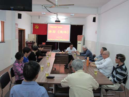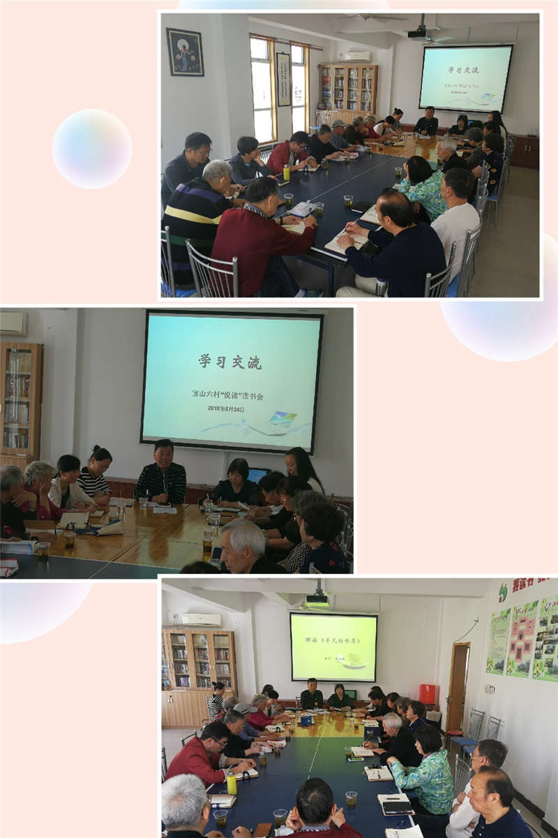 5月24日下午,宝山三村“学海无涯”读书会在宝山三村107号会议室学习《宪法》,由会长周有乾主讲,读书会成员共计12人参加。 周有乾会长和赵志嘉老校长作... [18/05/24] |