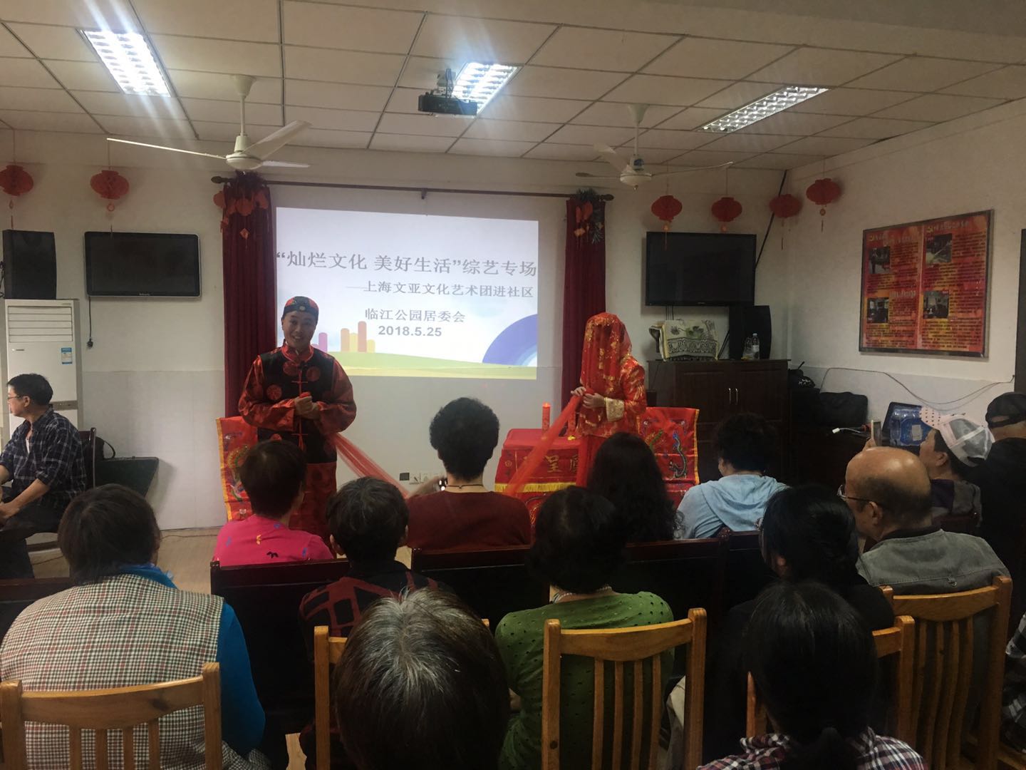 为丰富社区居民文化活动,结合宝山区公共文化资源四级配送工作要求,2018年5月25日下午13:30开展了“灿烂文化 美好生活”综艺演出活动。 由上海文亚... [18/05/25] |