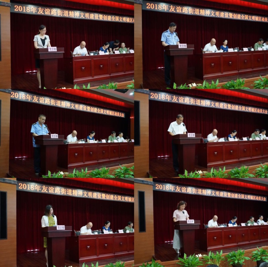 为全面、扎实、深入开展好街道精神文明建设和全国文明城区创建工作。6月12日上午,街道召开2018年精神文明建设暨全国文明城区动员大会。进一步统一思想,明确目标,压紧责任,街道党政领导班子成员,机关各科室(中心)负责人,辖区内公安派出所、交警四中队、城管中队等职能部门负责人,各居民区党支部书记、居委会主任,市民巡访团各片片长、区百人督查团街道成员以及各测评点位负责人等130余人参加会议。