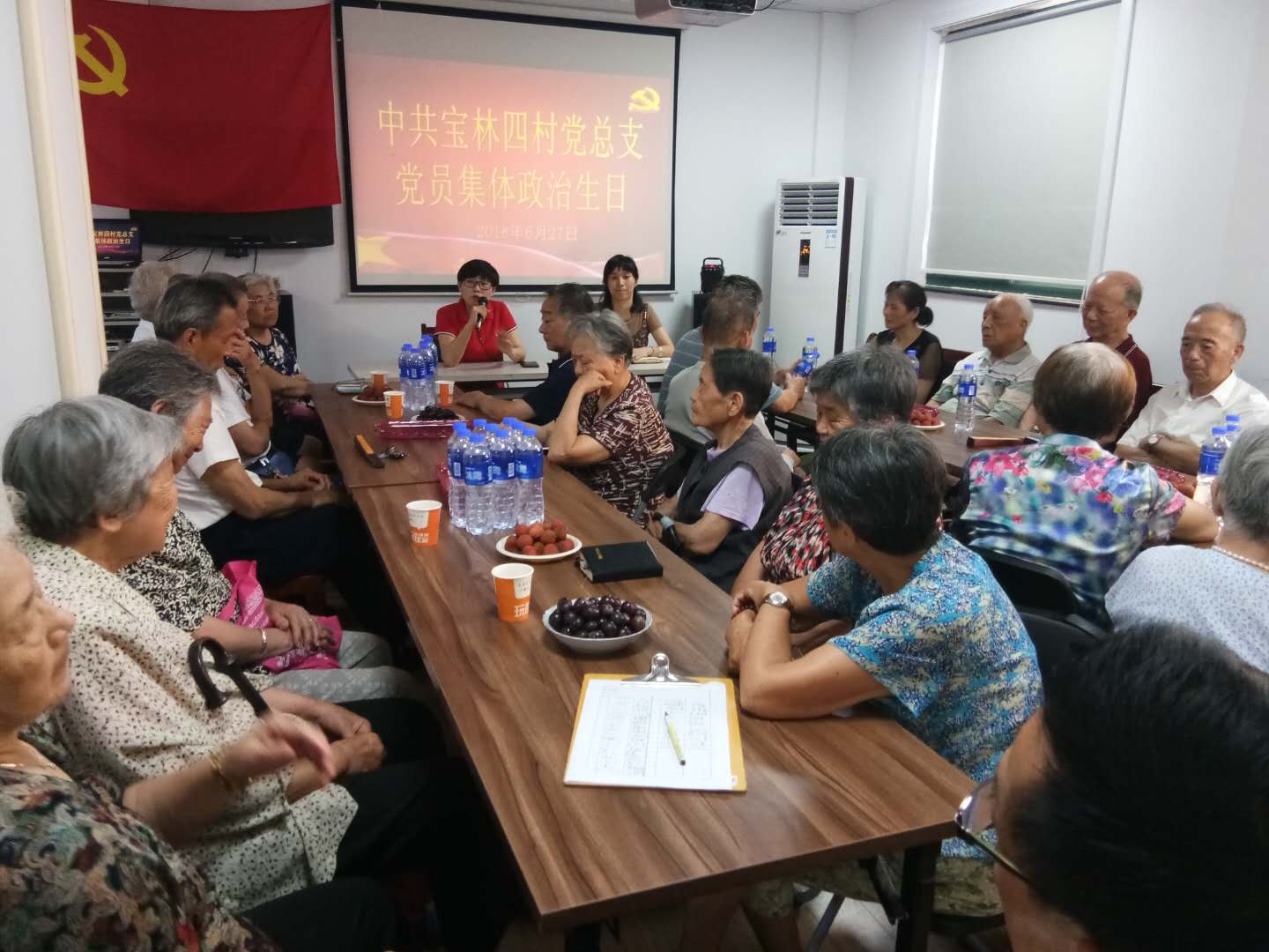 “政治生日”是党员入党的日子,是政治生命的开端。牢记自己的政治生日,是铭记对党的信仰和忠诚,对党的感恩和思想的成长。 宝林四村党总支于2018年6月27日在居委活动室,召开党龄50年及以上老党员集体政治生日活动。希望通过这个活动,以此让各位党员通过“政治生日”活动,思忆入党为什么,时刻牢记共产党人的初心和使命。 参加活动的党员们感慨万千,对于宝林四村党总支第一次举办这样有意义的活动,倍感激动,作为一名共产党员的光荣感、自豪感油然而生。党员们表示入党多年,随着时间的流逝对党的认识也由最开始的模糊变得清晰。现在回想起刚入党的时候,既激动又兴奋,觉得这是自己政治生命的开始,也是组织上对自己多年努力工作的认可和肯定。而现在,特别是重过政治生日、重温入党誓词,更让自己重拾入党初心,也是思想再一次的洗礼,感受到组织的凝聚力和对每一名党员的关爱。 活动后,党总支给每位党员发放了政治生日蛋糕,并送上祝福。有些党员因其他原因没有到场的,则请各支部委员上门看望慰问,希望他们能健康长寿,心情舒畅。